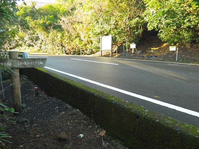 看板の前の道路を横切り、大島公園方面へ再び登山道に入ります。