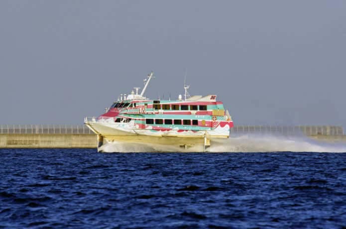 ジェット船は昼行便(午前1便、午後1便)で所要時間1時間45分。大型客船は夜行便1便で所要時間8時間。