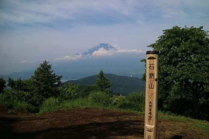 石割山山頂からも富士山と山中湖の展望が見事!山中湖側からの登山コースは初心者でも登りやすいため、山頂は多くの人で賑わいます。