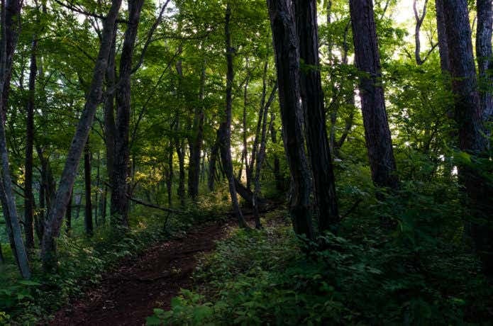 大榷首峠までは、なだらかで静かな森の中の山歩きを楽しみましょう。大榷首峠から山頂にかけては、急勾配の登山道となり、40分ほどで山頂へと至ります。