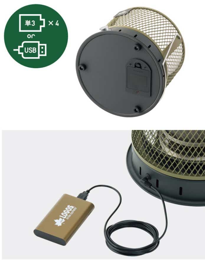 送風の電源は、単三アルカリ乾電池とUSBの両方に対応。電源環境に左右されにくく、シーンに応じた使い分けができます。