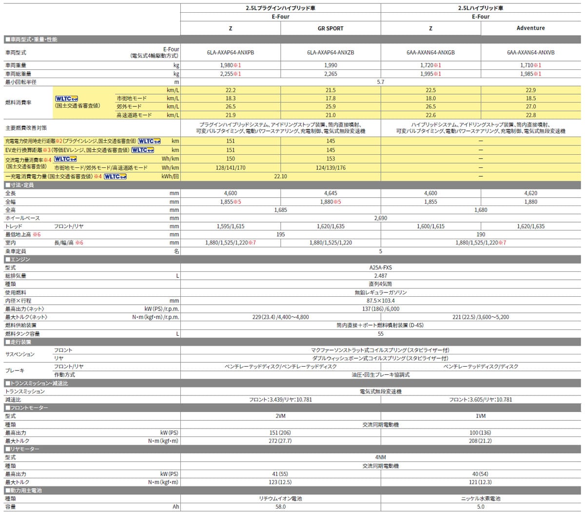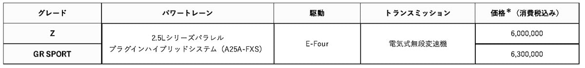 また、スポーティなスタイルと、PHEVならではの力強さと優れた操縦性能を備えた「GR SPORT」を新たなラインアップとして追加。これにより、「Z(PHEV/HEV)」、「Adventure(HEV)」、「GR SPORT(PHEV)」という電動化モデルのバリエーションが完成した。