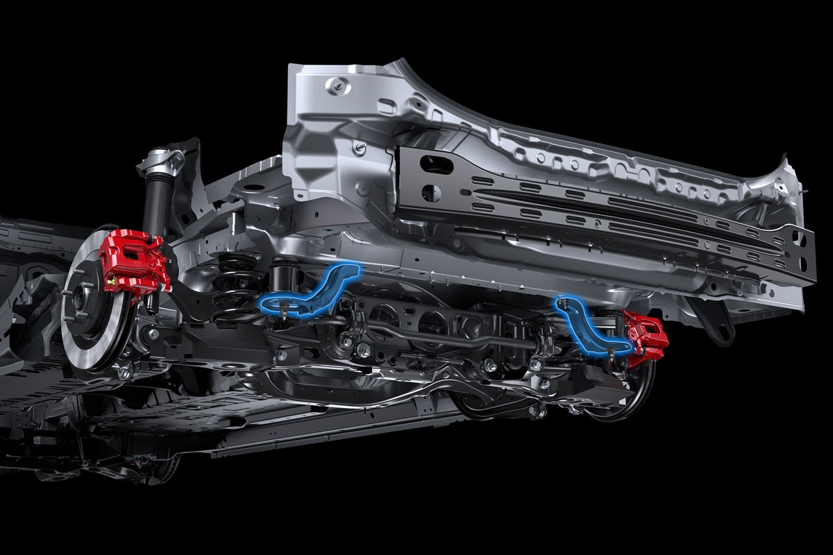 「パフォーマンスダンパー」の追加により、車体の減衰特性を向上させることで、走行中に生じるボディの微小な変形や振動を素早く収束し、車体のねじれや不安定な挙動を抑制。さらに、リヤサスペンションメンバーのブレース補強により、ダイレクト感のある操舵フィーリングとしている。