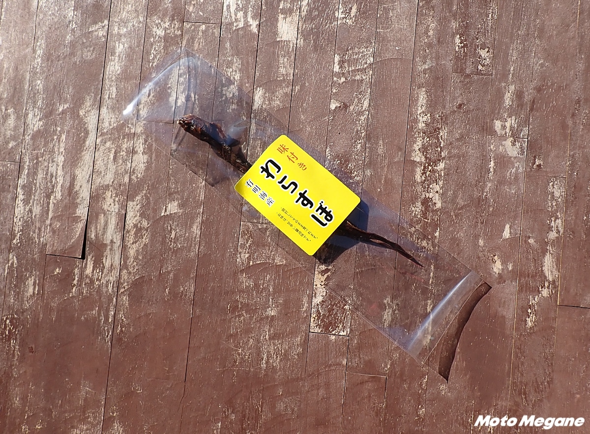 鋭い歯と細長い体を持つ独特な姿から「干潟のエイリアン」とも呼ばれる体長約30cmのハゼ科の魚。見た目のインパクトとは裏腹に、沿岸地域では古くから食用にされ、甘露煮やだし素材として食べられてきた。道の駅では甘辛く味付けをしてから乾燥させた味付けワラスボを購入できる。