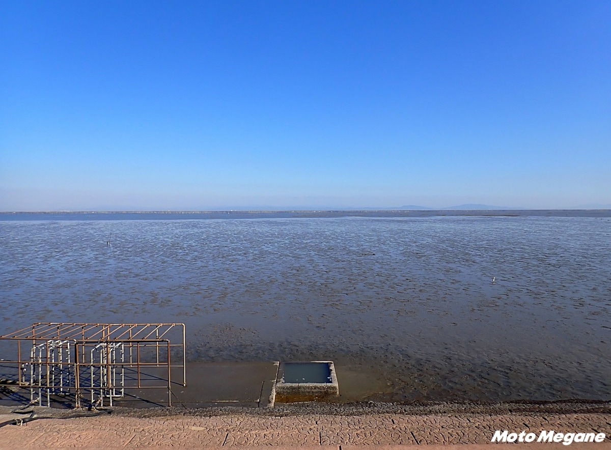 佐賀市内から鹿島市までは約60分。島原半島へと向かう海外線沿いの国道207号は有明海を眺めながら走行できるツーリングルートだ。干潟を望みながら過ごせる道の駅は、アクセスの良さも魅力で、買い物や休憩の立ち寄りスポットとして最適である。