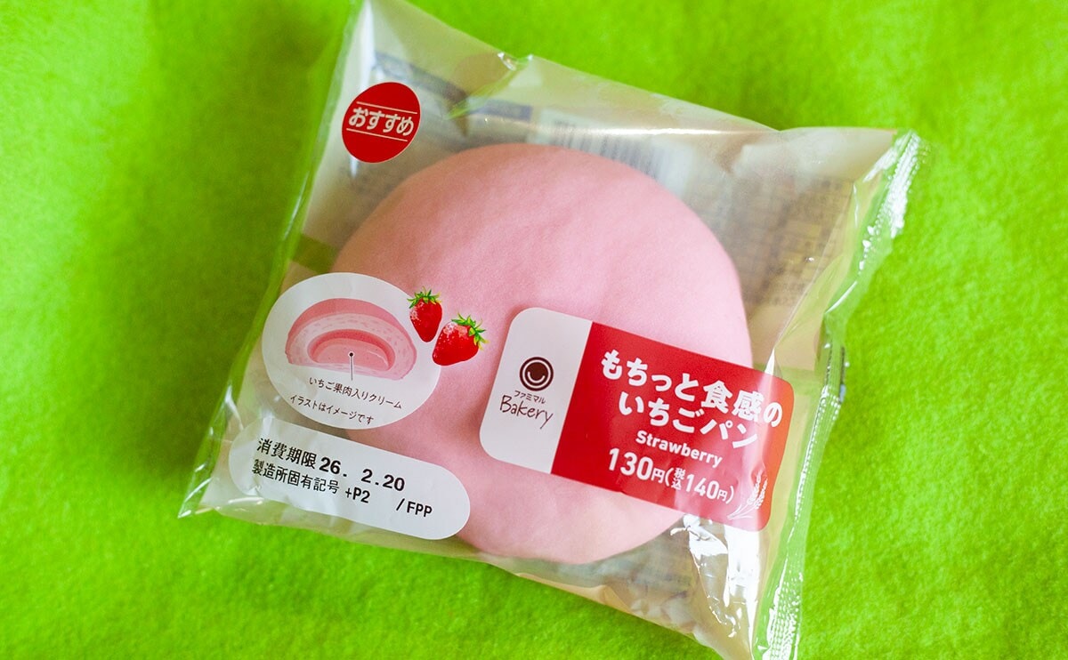 2026年2月17日(火)、ファミリーマートが発売したのが、「もちっと食感のいちごパン」(税込140円)という新商品です。