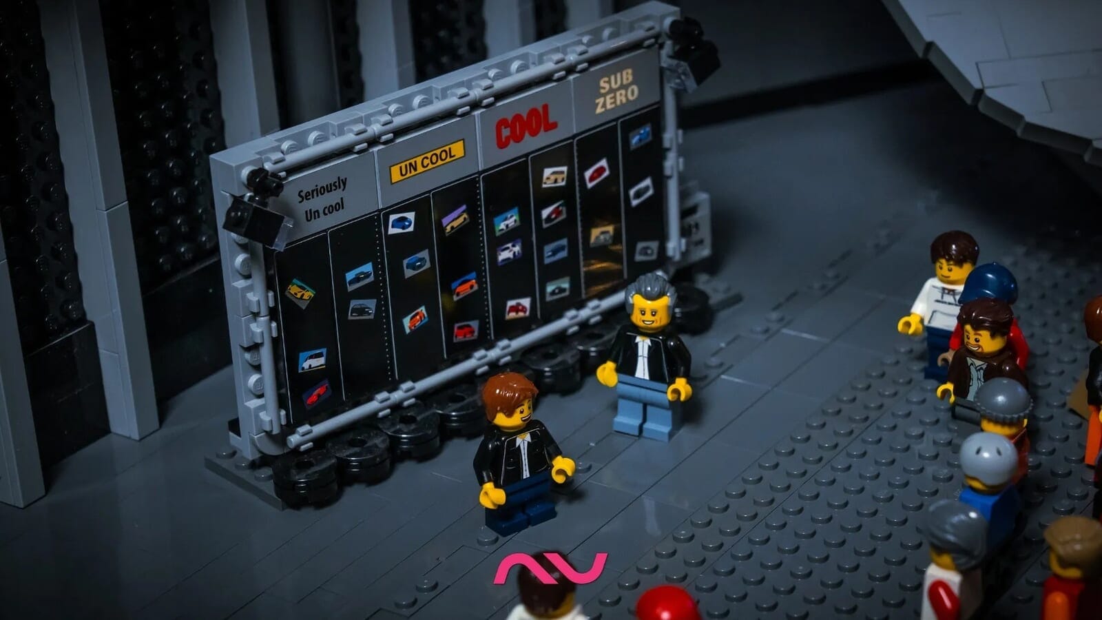もしかしたら見逃したかもしれないイースターエッグ(隠し要素)としては、リチャードのミニフィギュアの足(※6)がある。観客の中にはイエス キリストもいる(知る人ぞ知るネタだ ※7)。DB9のサブゼロ冷蔵庫(※8)もある。V8ブレンダー(※9)まで。90×90cmのスタジオを設計し、組み立てるのに45〜50時間(マンアワー)かかったそうだ。