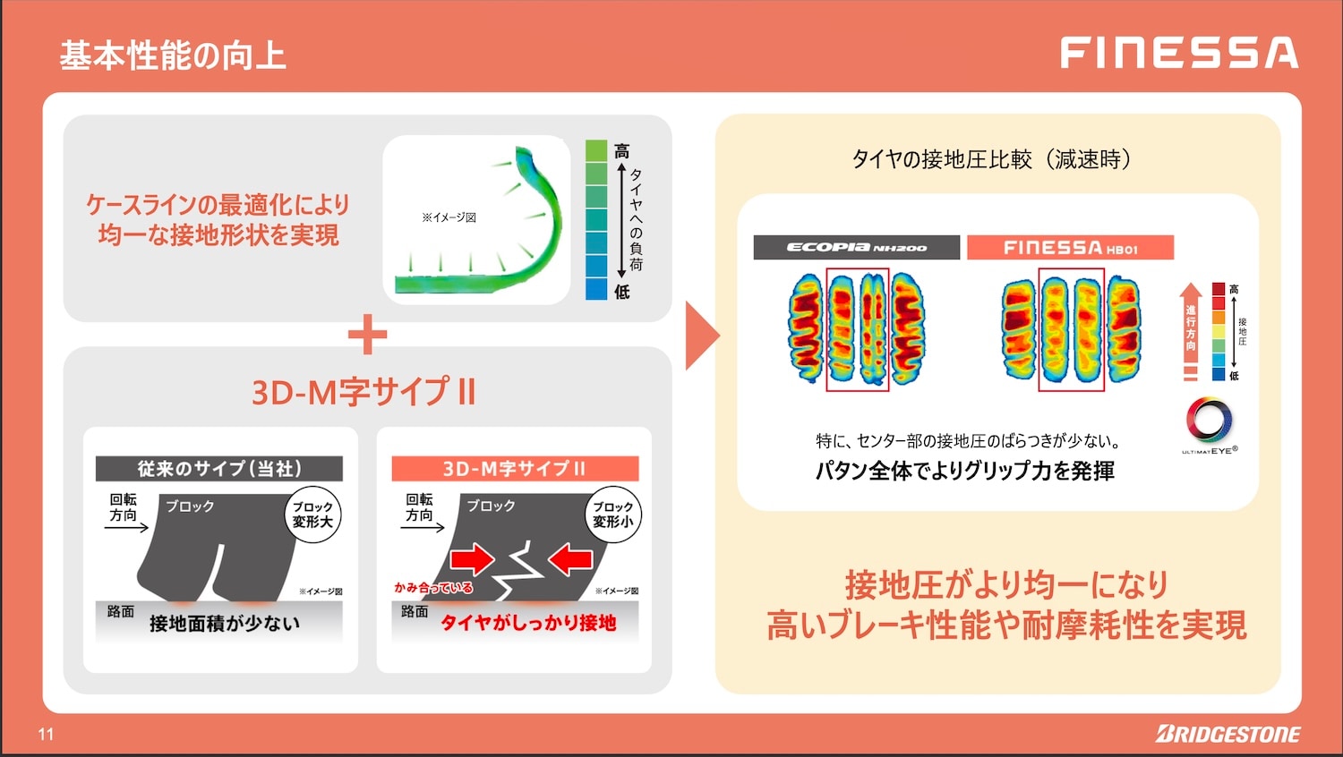 その新商品は「フィネッサHB01」というタイヤ名で、FINEとSAFETYから作られた造語だ。快適で心地良いファインと安全性能の双方をタイヤのコンセプトにしているスタンダードタイヤに位置付けられている。