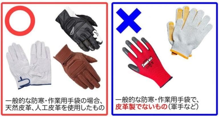 技能教習では、グローブの着用は必須です。こちらもほとんどの教習所で貸し出されておらず、基本的に持参となります。バイクショップやバイク用品販売店などで販売されているライディンググローブであればほぼ問題ありません。軍手やゴム製の作業用手袋は認められていません。判別がつかない場合は、ヘルメットと同様に教習所に事前確認をしましょう。