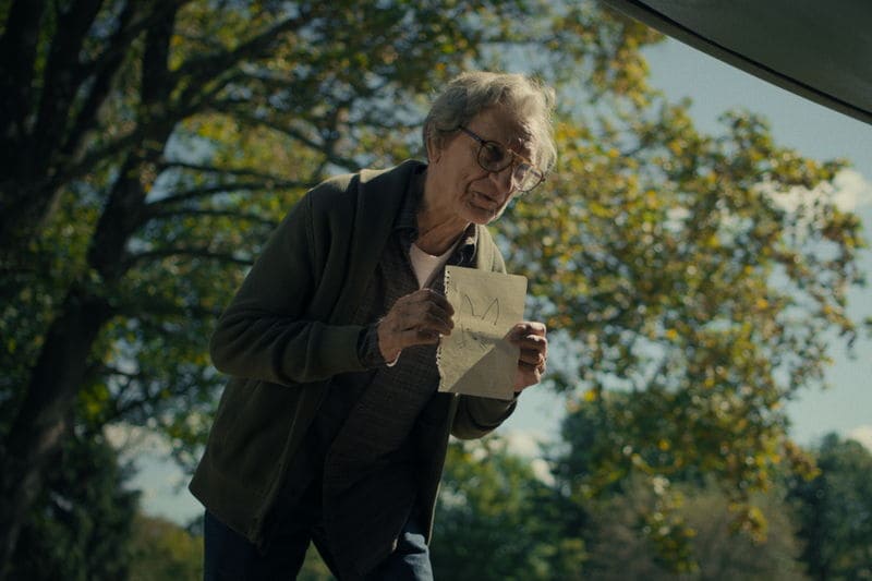 場面写真には、スーパーで買い物をするミルトン(ベン・キングズレー)の日常のひとコマや、娘・デニスと会話する姿など、彼を取り巻く生活の一端が切り取られている。さらに、フレームに収められた写真に映る少年を指さす場面や、猫のようなイラストが描かれた紙切れを手にするミルトンの姿も見られる。静かな日常の中に、彼の環境と心境の双方に訪れる変化を予感させるカットとなっている。また、ソファーに並んで座るミルトンと隣人のサンディー、ジョイスの姿や、謎めいた窓越しに3人を見下ろした場面も収められている。