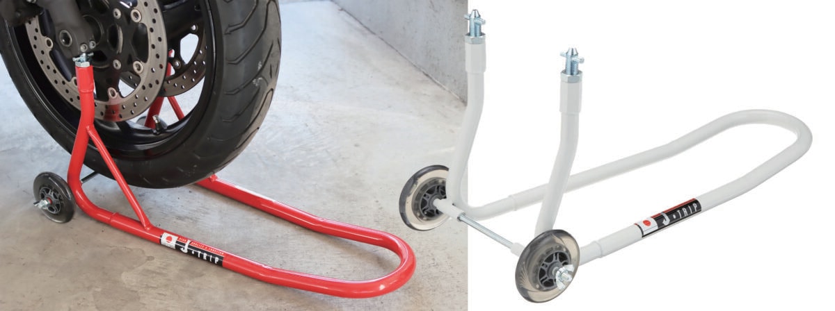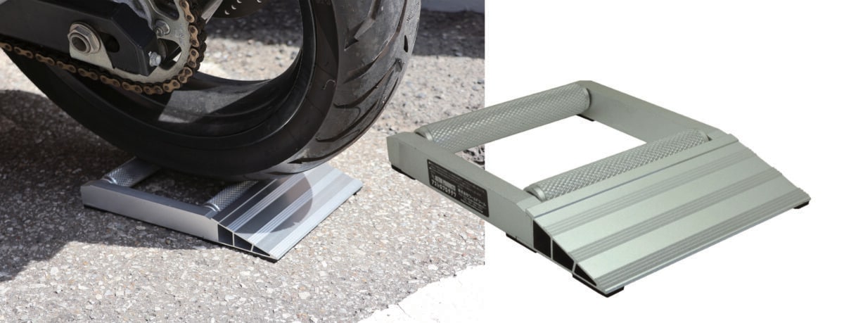 チェーンのグリスアップやホイール磨きなどの際にメンテナンスローラーがあれば、リフトアップが必要な作業も、素早く簡単に行うことができる。ローラーにはベアリング入りなので、手でも簡単にタイヤを回転させることができる。傾斜付きでスムーズにタイヤを載せることができるのも特徴だ。ただ、耐荷重が200kgとなっているので、それ以上の重量がある車両には使用できないので注意が必要だ。