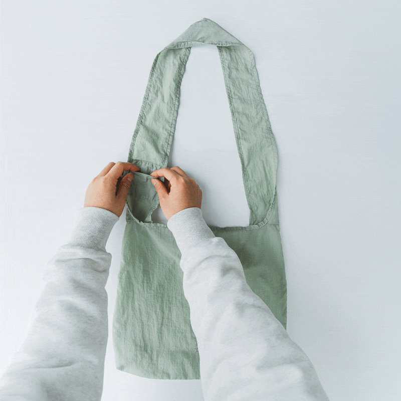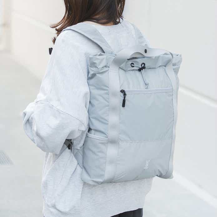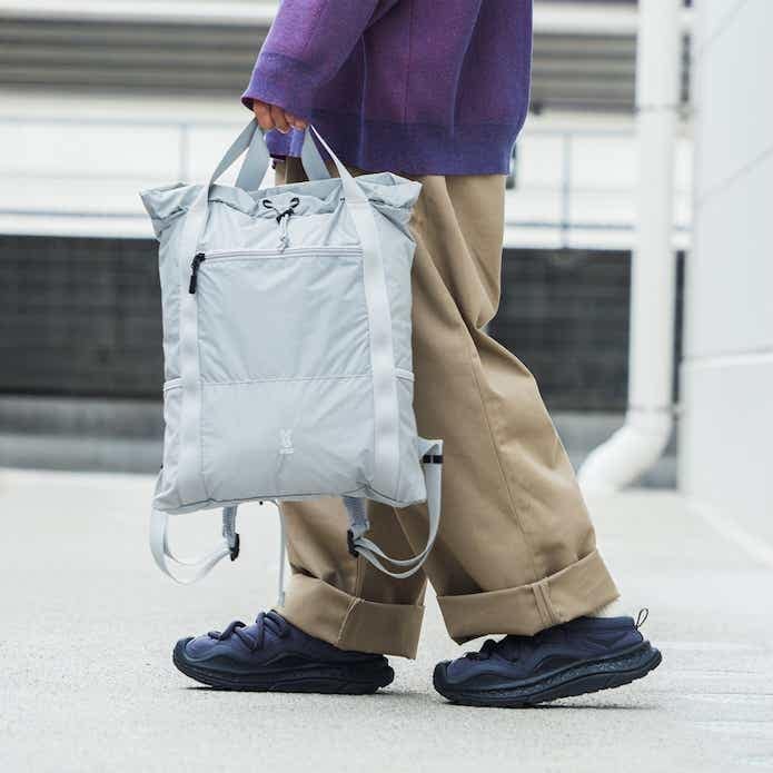 使わないときはバッグやベルトループに取り付けると着こなしのアクセントになり、広げると日常の荷物を詰め込めるバッグに。ライフスタイルを便利にアップデートしてくれます。