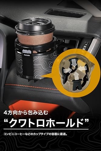 4方向から包み込むように保持し、コンビニコーヒーなども安定してホールド。