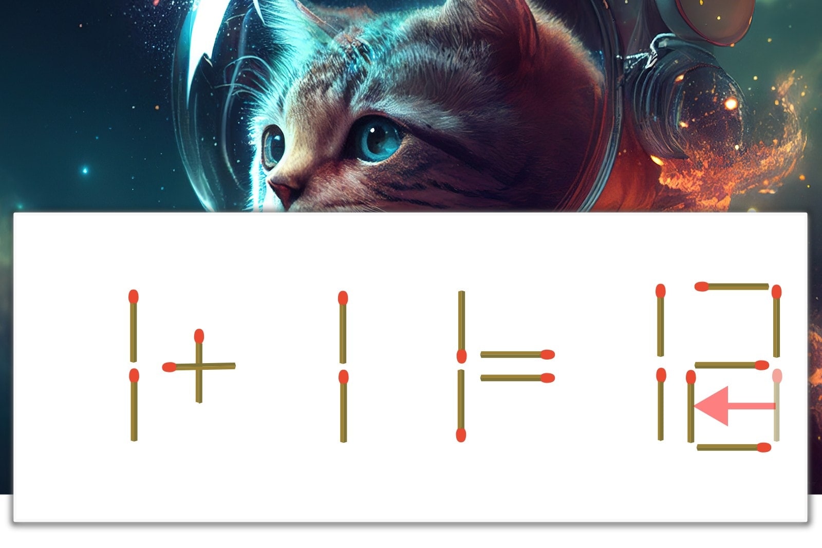 「3」を別の数字に変化させると答えが導き出せます。「3」のマッチ棒を1本移動して、「3」を「2」にしてみましょう。すると、「1+11=12」が成立します。