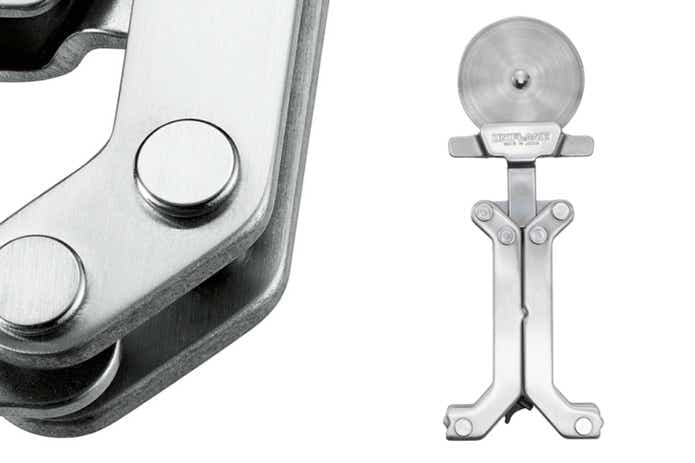 一見するとシンプルな金属プレートのようなこのアイテム。実は広げるとピザカッターに変身!