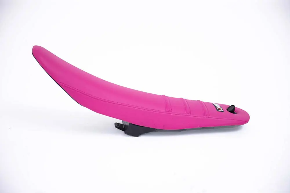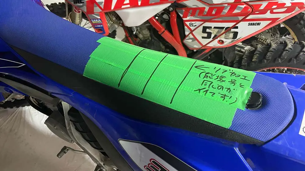 そしてシートは、名門ノグチシートへ委託。HRCのCRF450RALLYシートや、日本のカワサキファクトリーのシートを担当しているなど、一流中の一流。せっかくなので、能塚智寛と同じリブをつけてピンクにしてほしいとオーダー。なお、ノグチシートさんでは長時間疲れないシートや、足つきを求めたシートなど様々なオーダーに応えてくれます。
