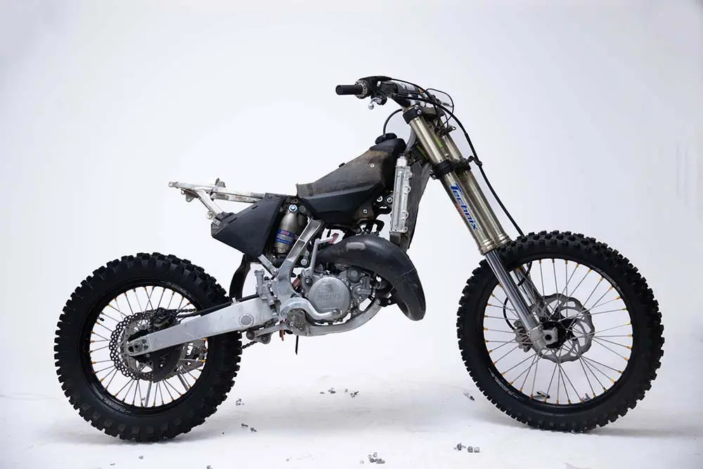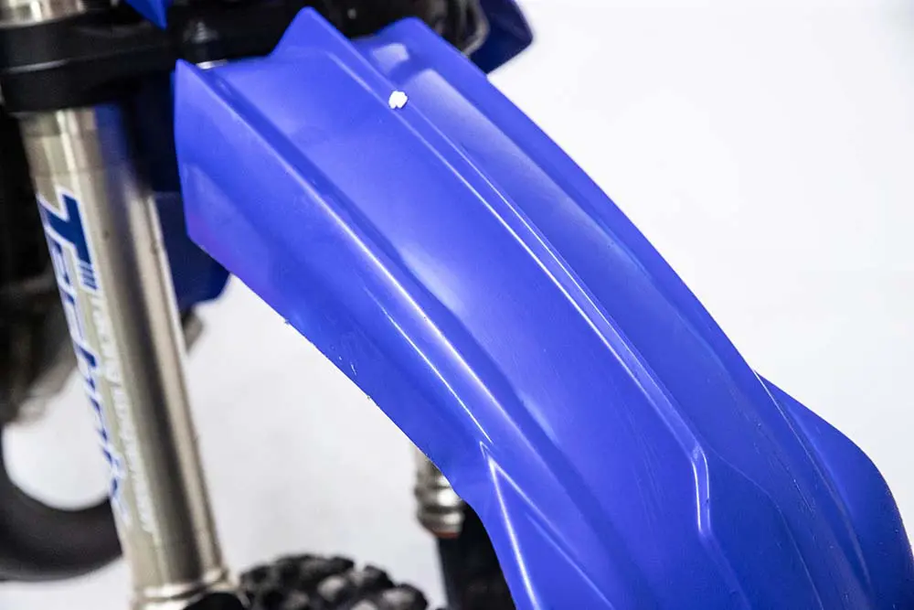 RIDEHACK編集部の公式マシンとして活躍してきてくれた2022年式YZ125。17年ぶりのフルモデルチェンジということで、最新のマシンを新車で買いました。この「最新型」というのがとても大事ですよね、常に新鮮な気持ちでいられて走るモチベーションも爆上がり。ただ、楽しんでいるうちにあっという間に2年が経過してしまいました。まだモデルチェンジはされていないので最新型ではあるのですが、モトクロスだけでなくハードエンデューロ的なところで投げられたり、ひどいマディに投入されたりしてきたYZ125は、だんだんクタクタになってきました。特に青いプラスチックは、折れ曲がった部分が白くなりがち。当たり前といえば当たり前ですが、2年たったら新車感はゼロです。
