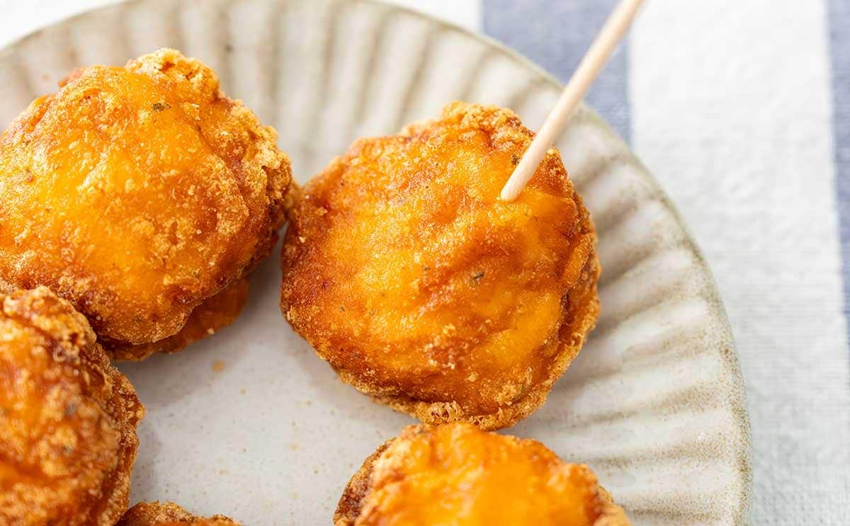 1食(5個入)当たりの熱量は228kcal、たんぱく質14.3g、脂質15.5g、炭水化物8.1g(糖質7.4g、食物繊維0.7g)、食塩相当量1.9gです。