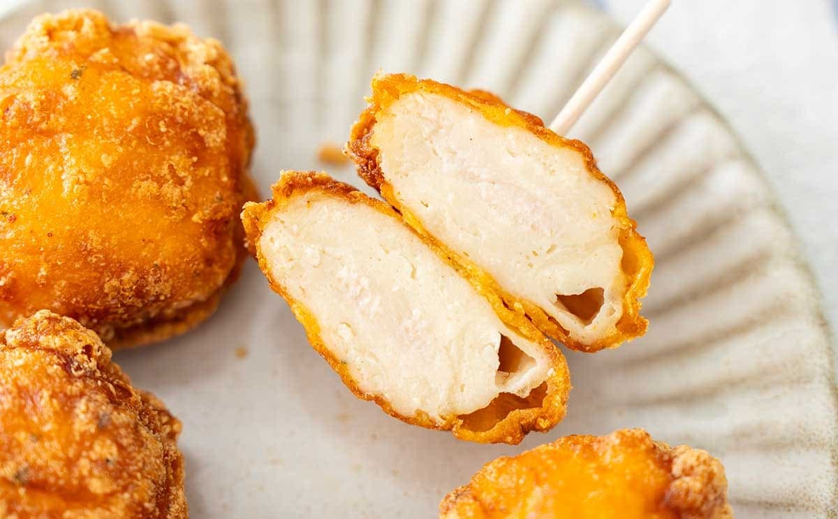 お皿のうえに「からあげクン」を並べてみました。イラスト入りの「からあげクン」が入っていないか探してみましたが、見当たらず……残念!