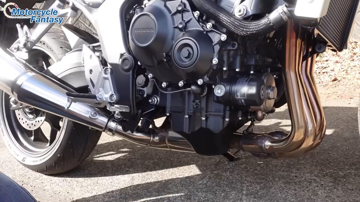 CB1000Fのパワーユニットは、水冷・DOHC・直列4気筒・999cc。スーパースポーツ譲りの血統ながら、性格はおだやか。低中速域からしっかりトルクが立ち上がり、街中でも扱いやすい。一方で回せば9,000rpm付近までスムーズに吹け上がり、「あ、俊足がベースだった」と思い出させてくれる。普段はおとなしいが、本気を出せばアッと驚く。そんな存在だ。