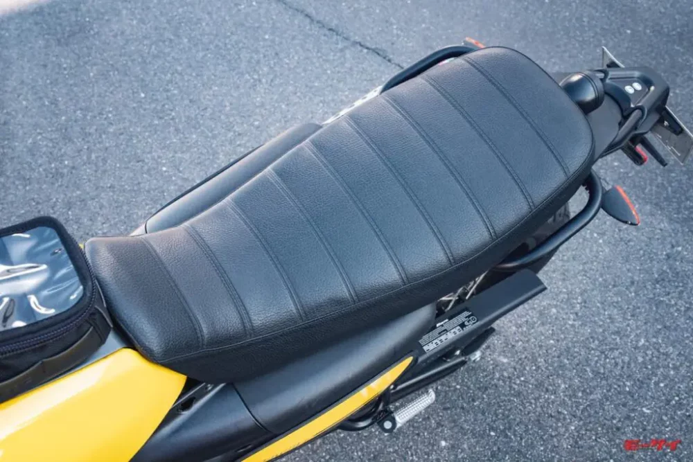 軽量、コンパクトな車体にパンチのあるエンジン、そして積極的にコントロールしたくなる足回りとなると「ファンテック キャバレロス クランブラー500は短距離走のアスリートが」と思うかもしれませんが、座り心地のいいシートはロングツーリングへの夢も膨らませてくれます。前後に長くフラットな作りですが、しっかりクッションも効き、先端部が細められたデザインは長距離でも「イケる」と感じました。そして、ポジションの自由度も高いので、楽なポジションや攻めるポジションなど好みに合わせてまたがることができそうです。