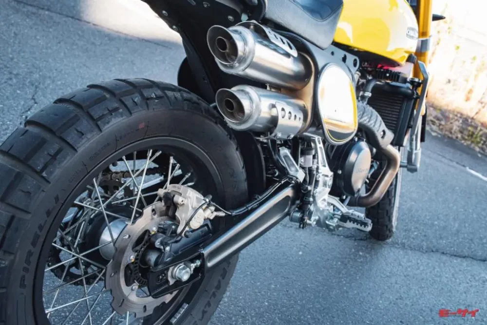 エキゾーストパイプの取り回しも独特で、野太い排気音は速いバイクが好きな方は誰もが虜になるような響き。もっとも、アイドリングは思いのほか静かなので、住宅街の早朝でもさほど肩身を狭くするものではありません。サウンドチューニングにもセンスが表れるものですが、そういう意味ではファンティック恐るべしといったところでしょう。