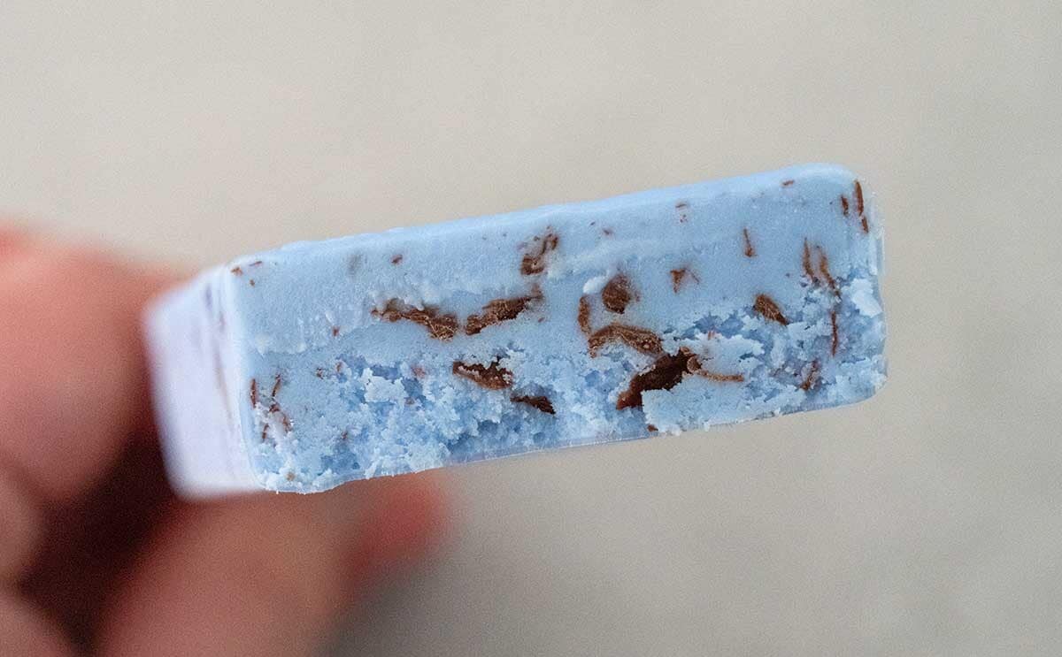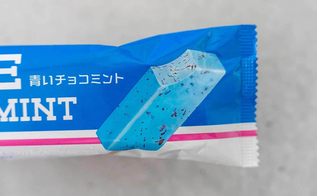 チョコミントアイスは緑色の商品も多いと思いますが、今回の「青いチョコミント」は、商品名のとおり青色。