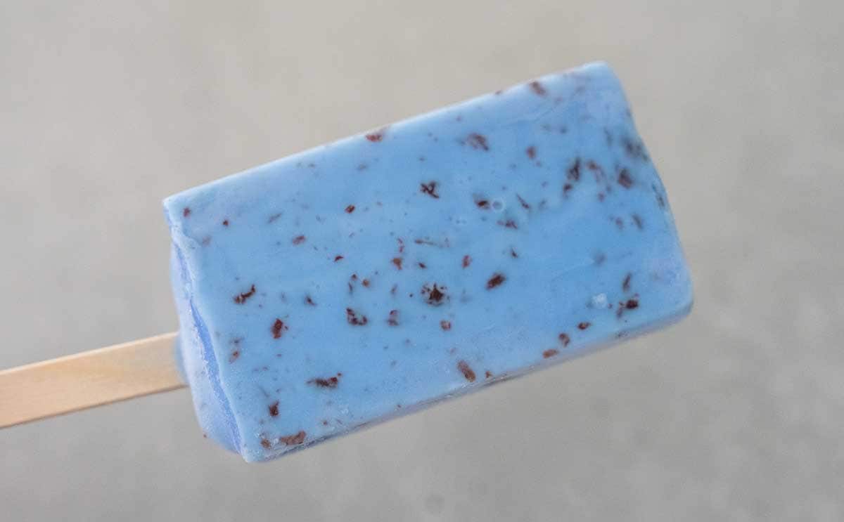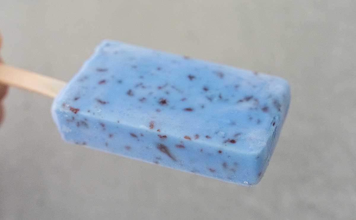 きれいなブルーのアイスの中に、チョコチップが散りばめられています。