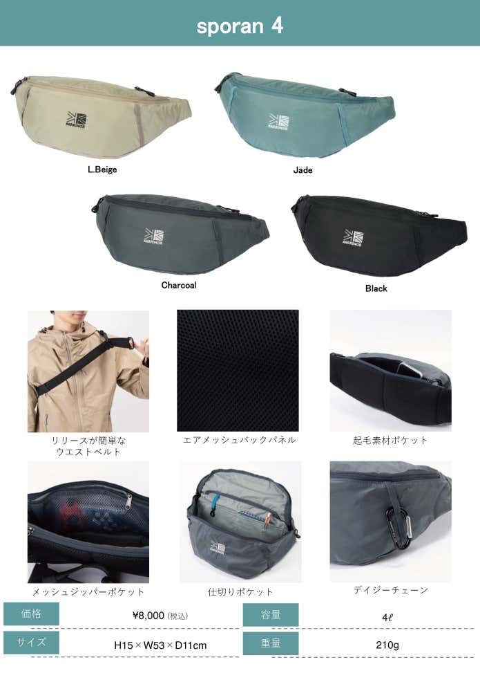 同時に登場したウエストバッグ「sporan(スポーラン)」も注目です。