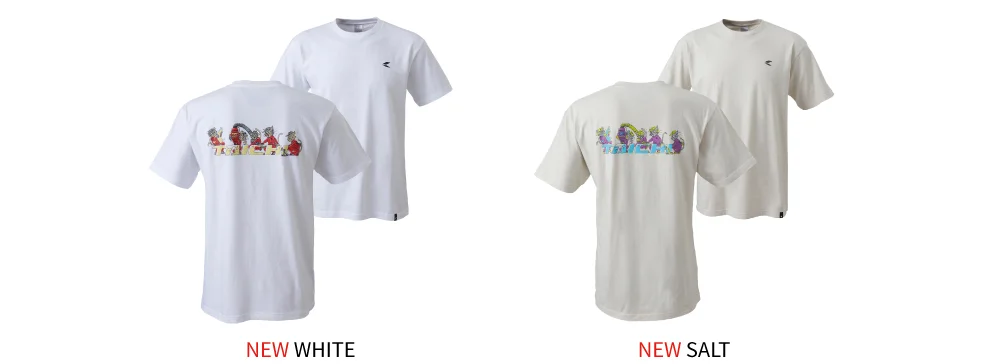荒々しい波とそれに乗るライダーがモチーフ。ベースは5.6オンスのやや肉厚の生地感で、リラックス感のある少しゆったりしたシルエット。