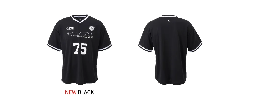 前面に炎モチーフのTAICHIロゴをあしらった、速乾性に優れた化繊素材のTシャツ。