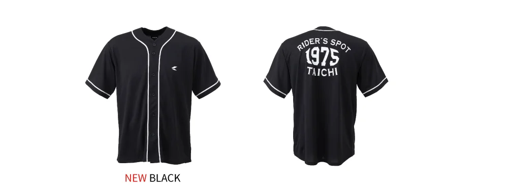 吸水速乾生地を使用し、軽量で通気性に優れたベースボールシャツ。前開き仕様で、背中に大きくロゴを配置しています。