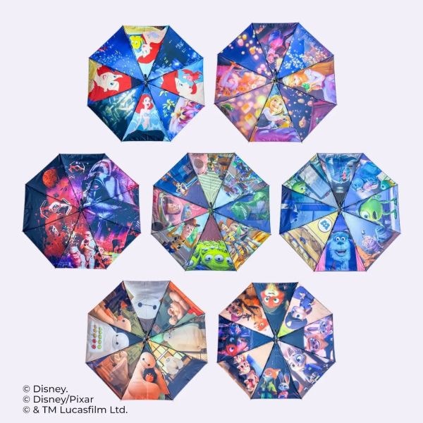 傘の内側に施された鮮やかなフルカラープリント。「ファイナルフレーム」と銘打たれたそのデザインは、物語のクライマックスや心揺さぶられる名シーンを再現している。ラインアップは、海の世界のアリエルがかわいい『リトル・マーメイド』や、幻想的なランタンが舞う空が広がる『塔の上のラプンツェル』、ウッディやバズら人気キャラクターが勢ぞろいの『トイ・ストーリー』、迫力ある宇宙戦を描いた『スター・ウォーズ』など、世代を超えて愛される7作品。