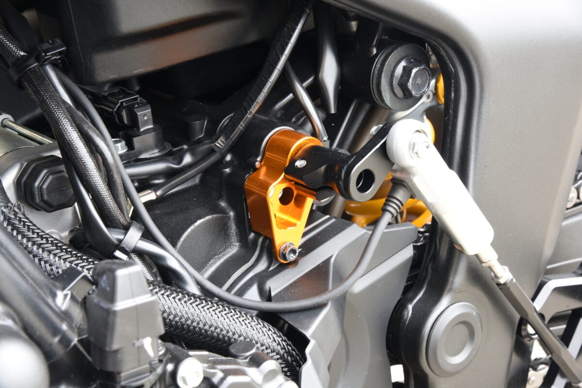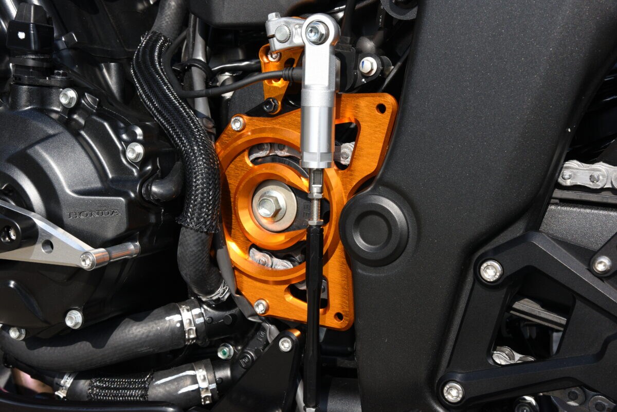 シフトシャフトのしなりやガタつきを抑えることで、シフトチェンジの操作感を向上するパーツ。とくに高回転時のシフトチェンジで、確実な操作性実現に寄与する。元々はCB1000FのベースエンジンとなっているCBR1000RR用として開発され、その効果が高い評価を獲得。CB1000F用として再設計された。