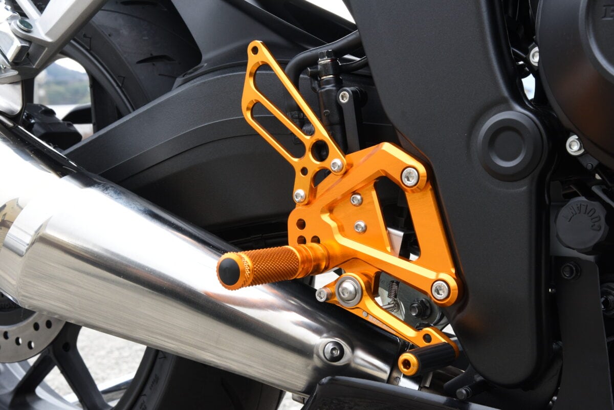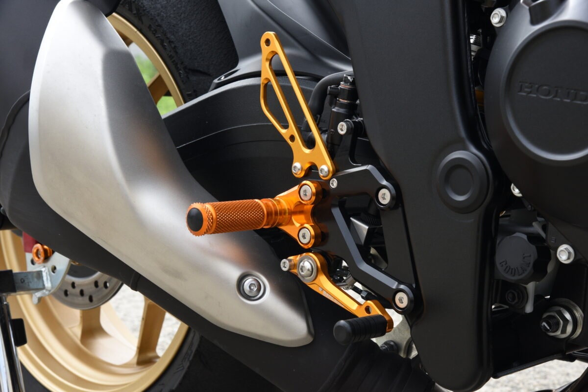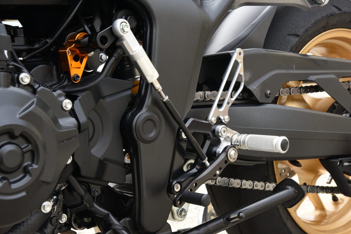 CB1000F用パフォーマンスステップキットは、街乗りやワインディングで乗りやすいライディングポジションとスムーズな操作性の両立を図り、CB1000Fのスポーティな走りをより深く楽しめるようにこだわって作られた製品だ。取り付けには、純正クイックシフター有/無のどちらにも対応している。