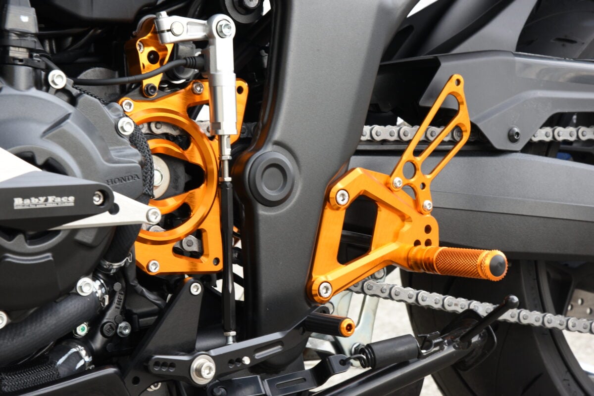 CB1000F純正ステップは前寄りで操作性がいまいち……。 そんな不満を解消するベビーフェイス製ステップが走りをさらに楽しくする!