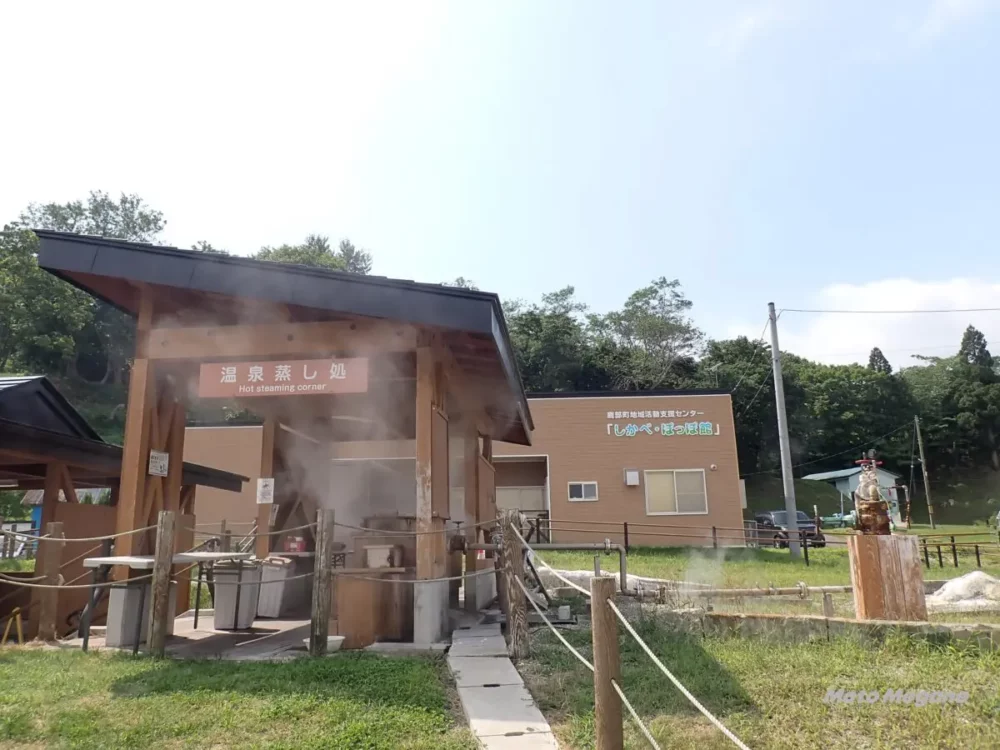 屋外の「鹿部温泉蒸し処」では売店で買った食材を調理し、食べることができる。併設の間歇泉公園(入園料300円)には間歇泉のほか、足湯や休憩スペースが設けられている。