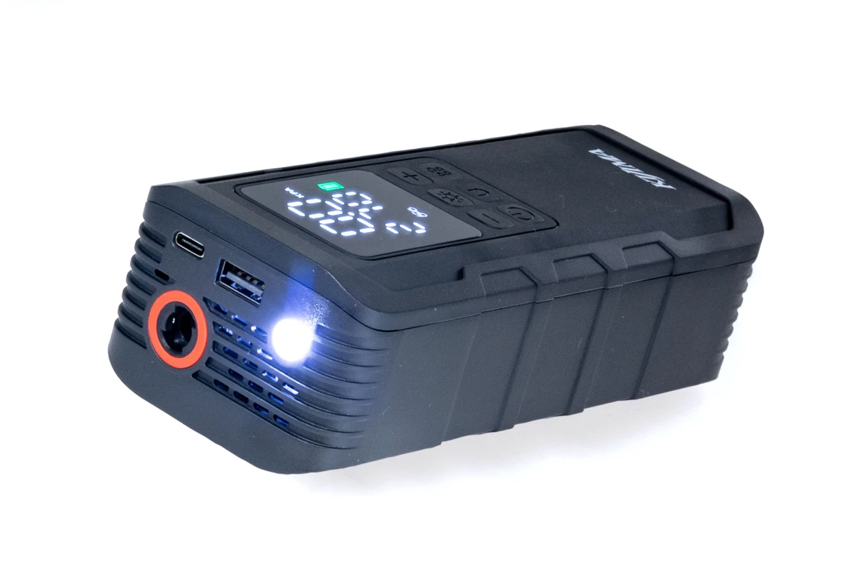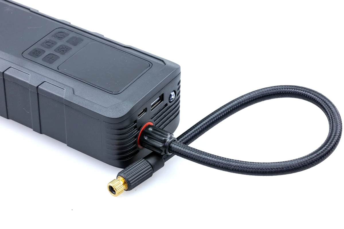 あらかじめユーザーが指定した空気圧を自動で入れてくれる、軽量・コンパクトで持ち運びしやすい、バッテリー駆動で配線不要などのバイク用ポータブル電動空気入れとしての基本は網羅しながら、多機能かつユーザー目線な仕様の数々、そして新たに登場したオプションによる利便性の向上など…とにかくJP03には数々のイケてる特徴があるので、まずは早速それらを解説していきますね。