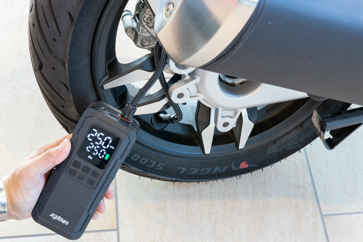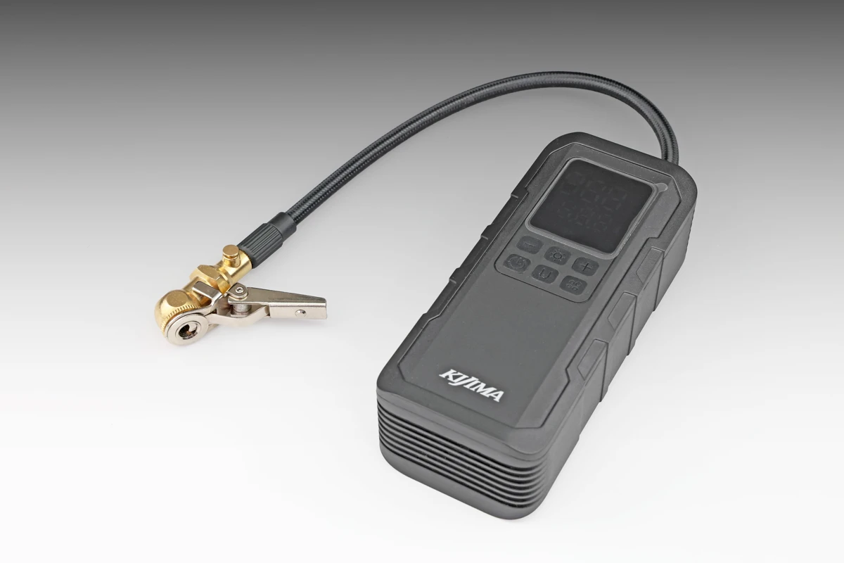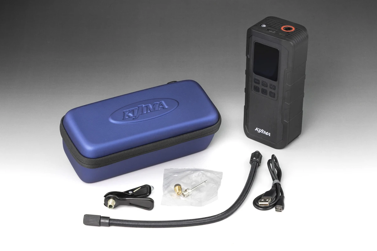 現在複数のバイク用品メーカーからリリースされてる、バイクのタイヤに空気を入れるための便利ガジェット「バイク用ポータブル電動空気入れ(様々な呼び名があります)」の元祖ともいうべき存在が、キジマの「スマートエアポンプ」です。