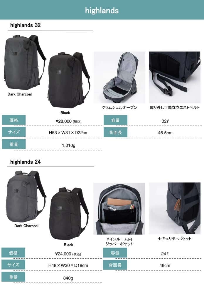 40L追加&キャリーオン対応。「highlands」がさらに頼れる存在に