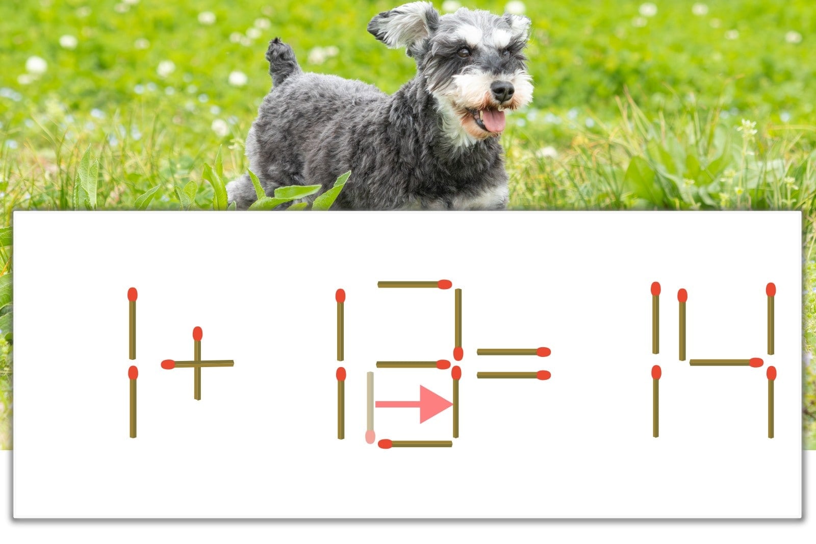 「2」のマッチ棒を1本、右にスライドさせて「3」を作り、「1+13=14」にする。※解答は複数ある場合があります。