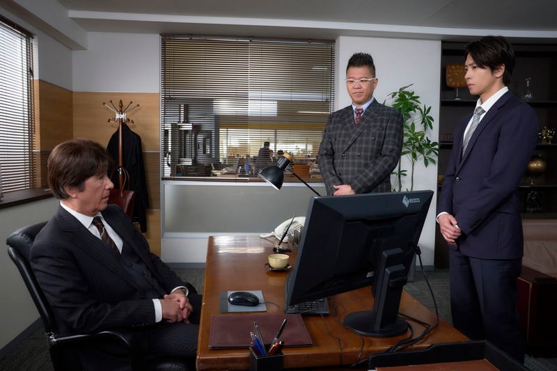 営業部長・大河真澄(長谷川忍)に胸ぐらをつかまれている永瀬、かつてのライバルで不動産ブローカーの桐山(市原隼人)と珍しく仲むつまじそうに食事をしているかと思いきや、桐山が永瀬に詰め寄る一触即発な緊張感の漂うショットもある。さらに、登坂不動産のライバル会社・ミネルヴァ不動産の立川店の店長でカリスマ営業マン、神木涼真(ディーン・フジオカ)と桐山が神妙な面持ちで並んでいる姿や、社員を厳しくも暖かく見守る登坂不動産の社長・登坂寿郎(草刈正雄)も見られる。