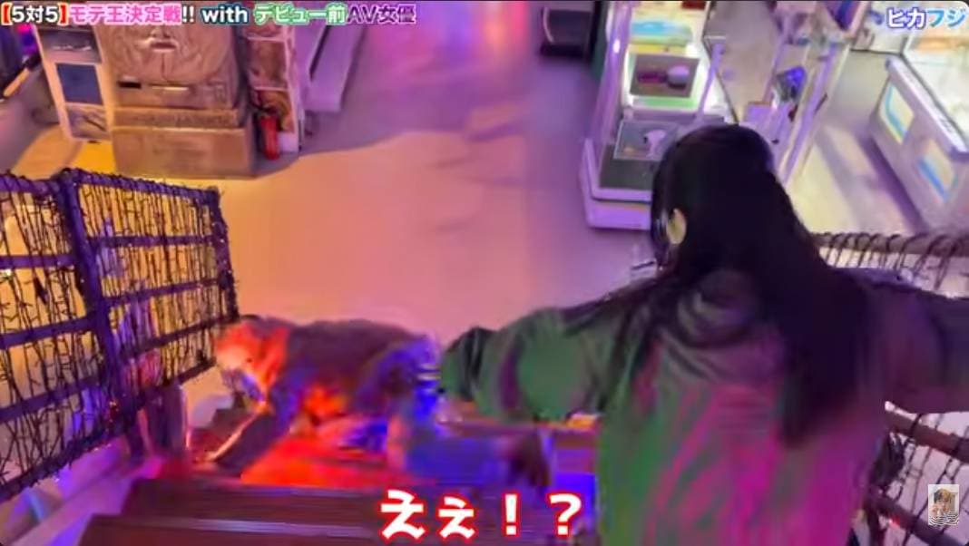 動画では、人力車や食事を楽しんだ後、ゲームセンターへ移動。そこで男女のツーショットタイムが始まり、ヒカルは渋谷で風俗店に勤務している「フジ」に指名され、2人で館内を回りました。