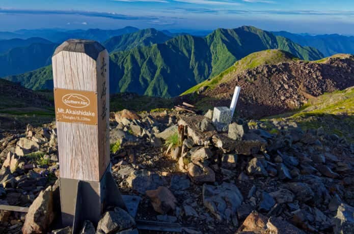 一方、日本で最も標高の高い場所にある一等三角点は、南アルプス・赤石岳(標高3,120m)の山頂付近に設置されています。