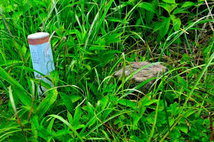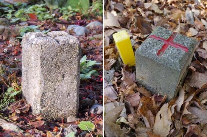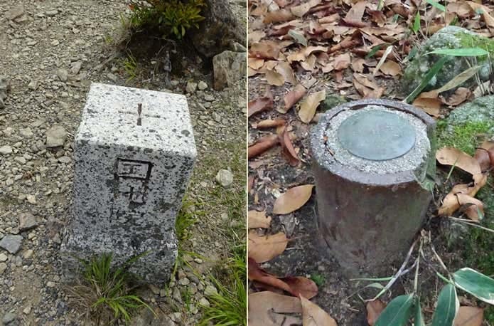 一方で、よく似ているのが山林の境界標。赤いペンキが塗られていたり、「三角点」の文字がなかったりするのが特徴です。サイズはやや小ぶりで、三角点に比べると少し控えめな印象。じっくり観察すれば、違いが見えてきます。