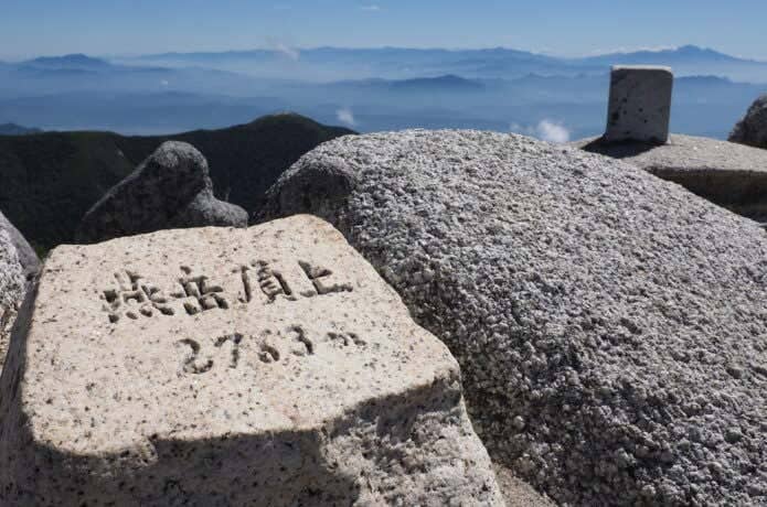 通常、三角点は花崗岩で造られますが、剣ヶ峰には乗鞍の安山岩で造られた、珍しい三角点が設置されています。
