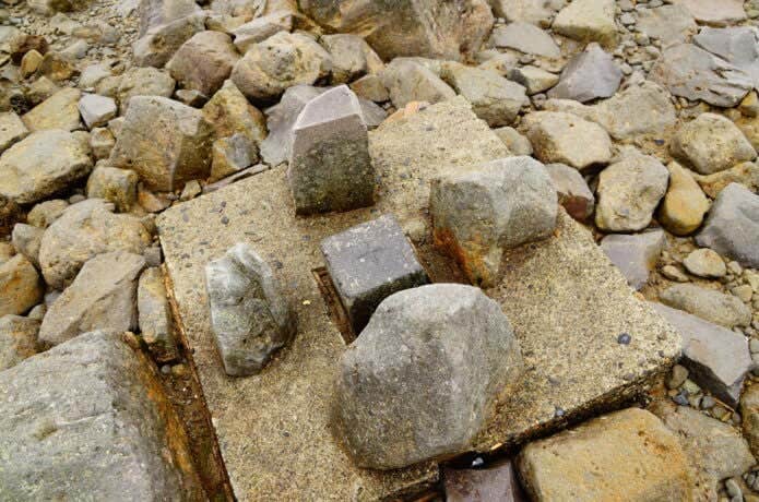 この図のように、私たちが目にしているのは、ほんの一部にすぎません。実際に見えているのは「標石頭部」だけで、その大部分は地下に埋められています。90kgというのにも納得できますね。