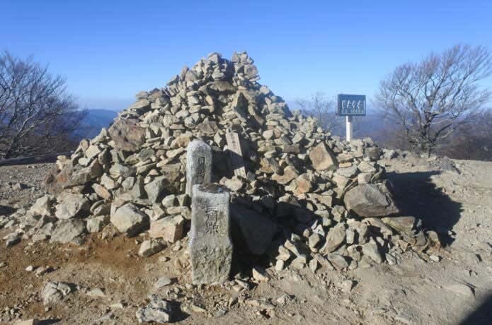 一等三角点は山頂に設置。見晴らしの良さが三角点に選ばれた一因でしょう。七合目登山口からなら山頂まで2時間程度です。