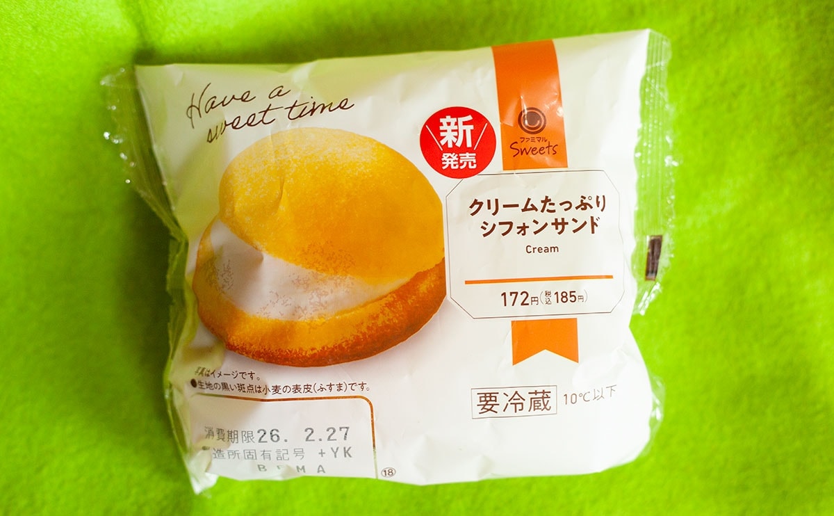 2026年2月24日(火)、ファミリーマートは、「クリームたっぷりシフォンサンド」(税込185円)という新商品を発売しました。