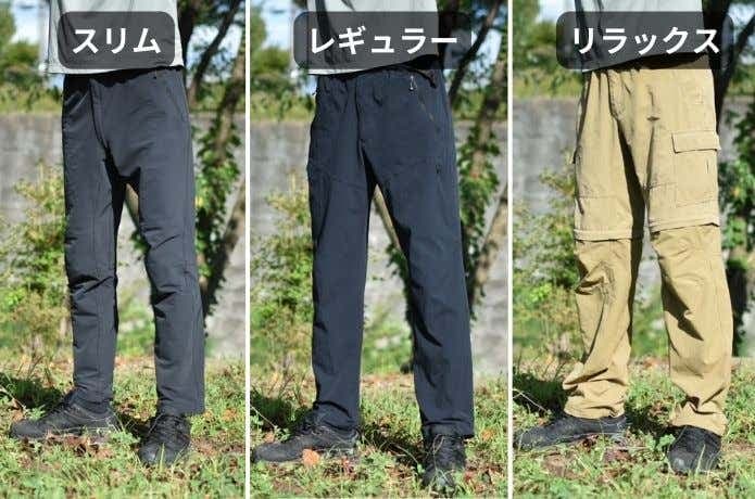 トレッキングパンツのフィット感は、大きく分けてスリム・レギュラー・リラックスの3タイプに分類できます。